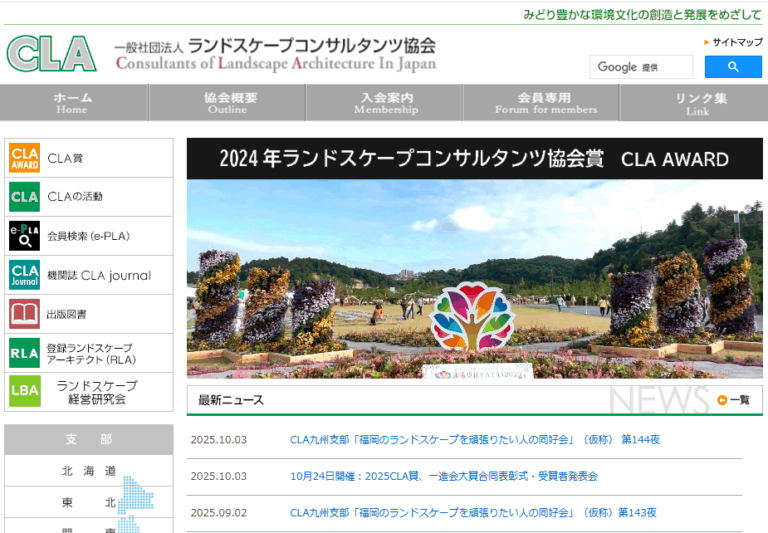 一般社団法人ランドスケープコンサルタンツ協会(以下、CLA)ならびに全国1級造園施工管理技士の会(以下、一造会)は、10月24日(金)、2025CLA賞/一造会大賞合同表彰式・受賞者発表会を「ビジョンセンター田町」またはオンライン(Zoom)配信にて無料開催する。