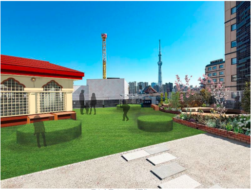 第一園芸株式会社は3月20日(金・祝)にリニューアルオープンする日本最古の遊園地「浅草花やしき」の屋上庭園のデザイン、施工を担当した。